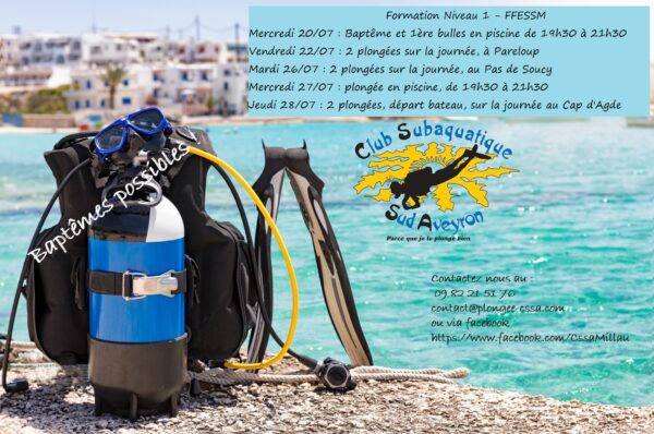En juillet, le CLUB SUBAQUATIQUE DU SUD AVEYRON vous propose une formation...