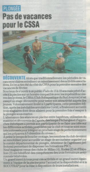 Le CSSA organise un stage découverte de la plongée et des activités...
